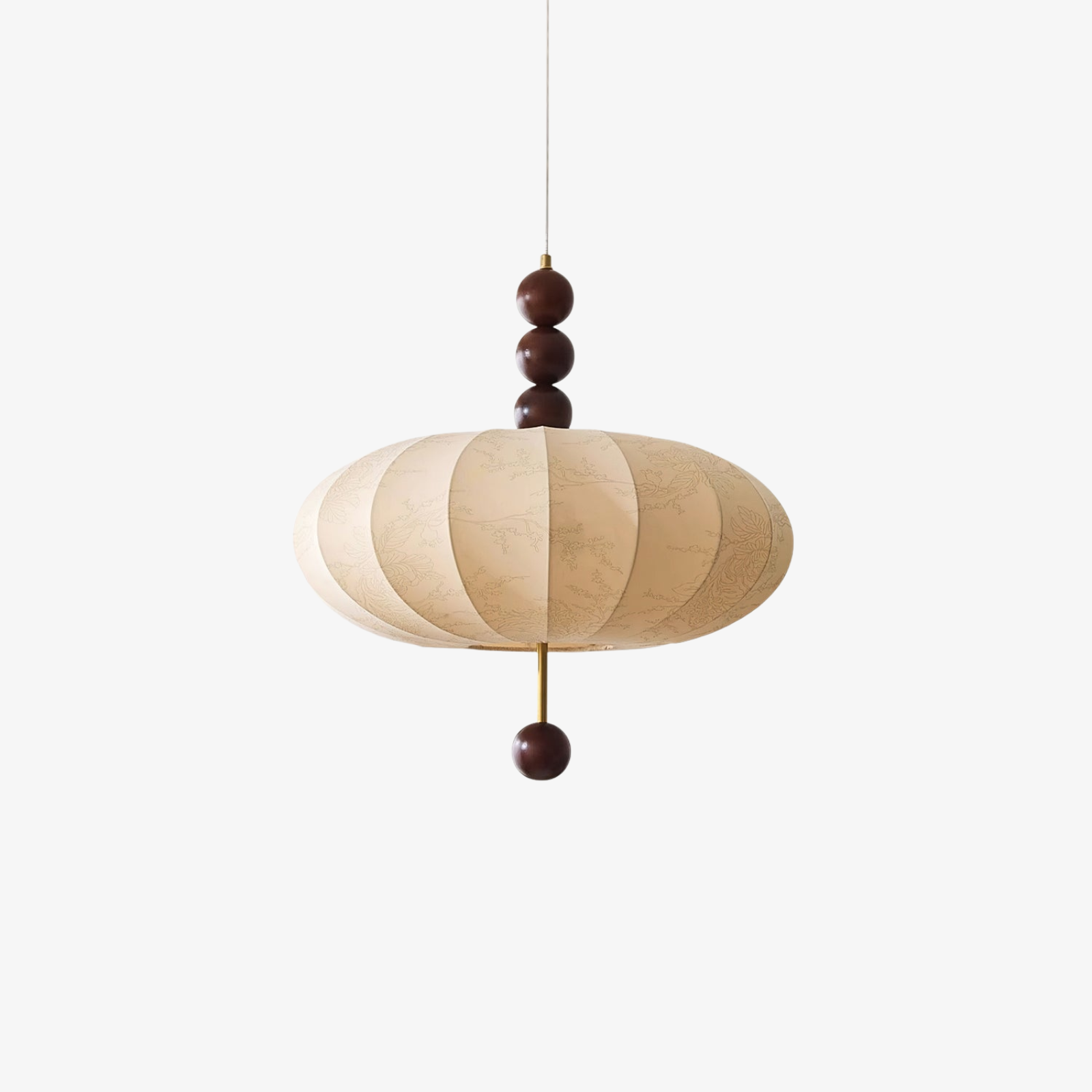 Eine meisterhafte Studie in Balance: Der Abacus Pendant verbindet die luftige Leichtigkeit einer Japandi-Laterne mit der selbstbewussten Geometrie des Mid-Century Modern Designs. Sein großer, tellerförmiger Stoffschirm wird von einer zentralen Säule aus massiven, gestapelten Holzkugeln getragen und schafft eine skulpturale Form, die sowohl geerdet als auch ruhig schwerelos wirkt. Diese Pendelleuchte ist ein eindrucksvolles, aber zurückhaltendes Herzstück, das Licht streut und Ihrem Raum ein Gefühl von Ruhe verleiht.
