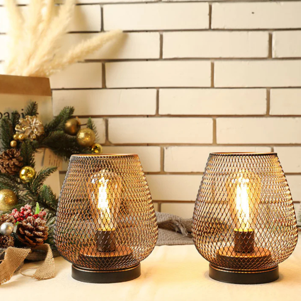 Kabelloses Lampenset mit Eisendrahtgeflecht für Nachttisch oder Terrasse