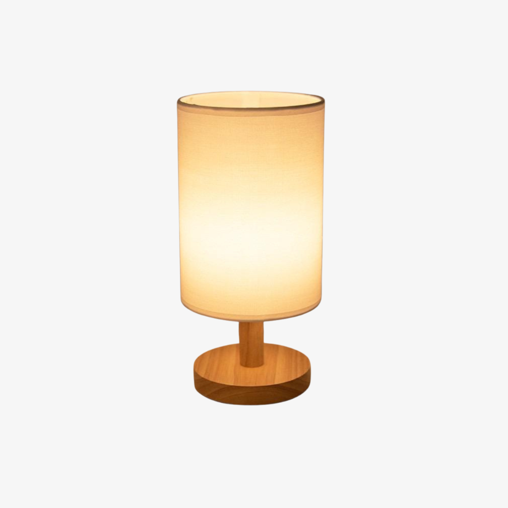 Dimmbarer Holztischleuchter im Stil der Mitte des Jahrhunderts mit Stoffzylinderschirm
