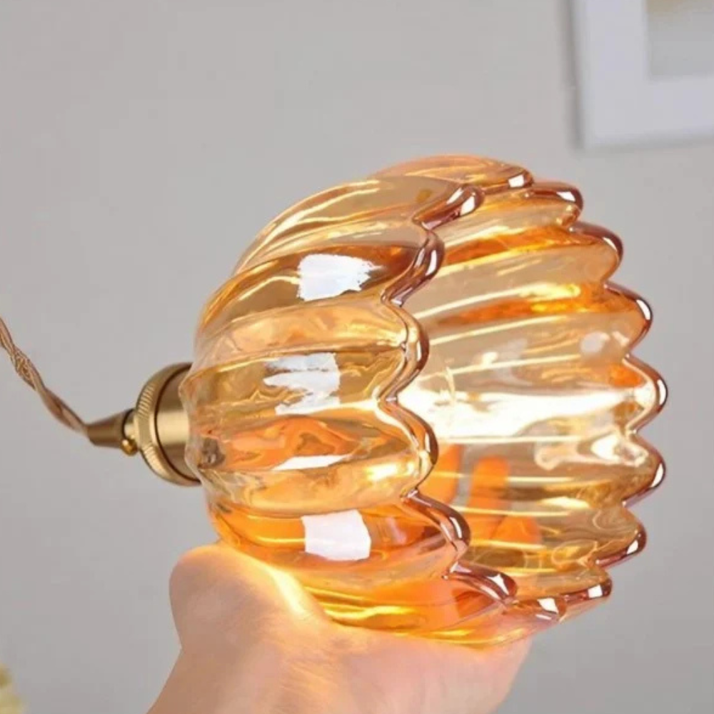 Glashängelampe mit gewelltem Blumen-Schirm – Retro Mid Century