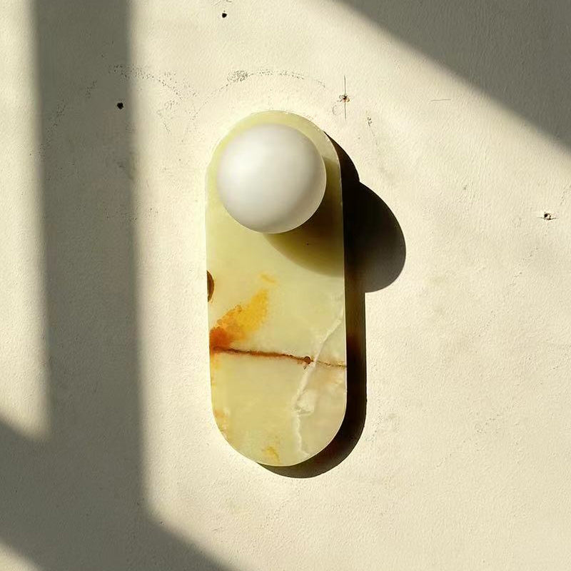 Minimalistische skulpturale Form: Die einfache, elegante Geometrie der Kugel und der pillenförmigen Rückplatte schafft eine zeitlose, künstlerische Aussage an jeder Wand.