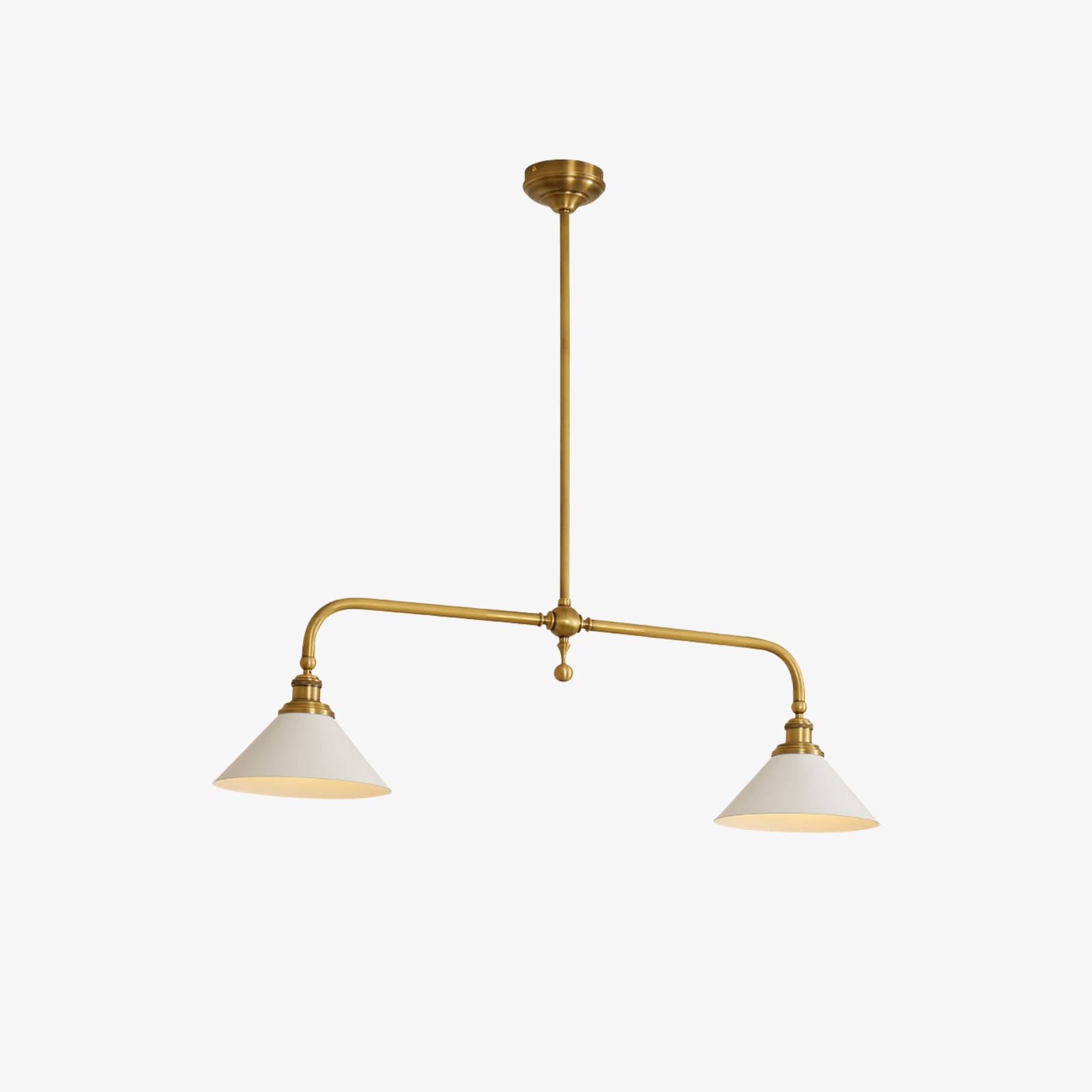 Inspiriert vom fokussierten Licht klassischer Bibliotheken und Pariser Bistros bringt der Scholar Linear Pendant einen zeitlosen, intellektuellen Charme in Ihren Raum. Sein attraktiver Messingrahmen, veredelt mit filigraner Hardware, hält zwei einfache, konische Schirme, die einen perfekten, nach unten gerichteten Schein werfen. Es ist eine Studie in Balance und Zweck, entworfen, um die wichtigsten Flächen in Ihrem Zuhause elegant zu verankern.