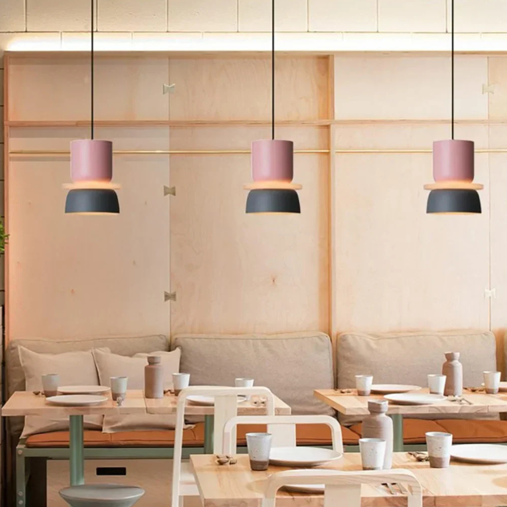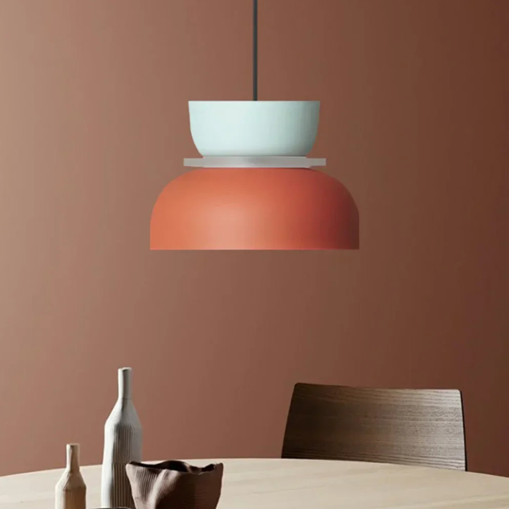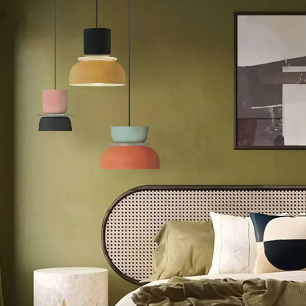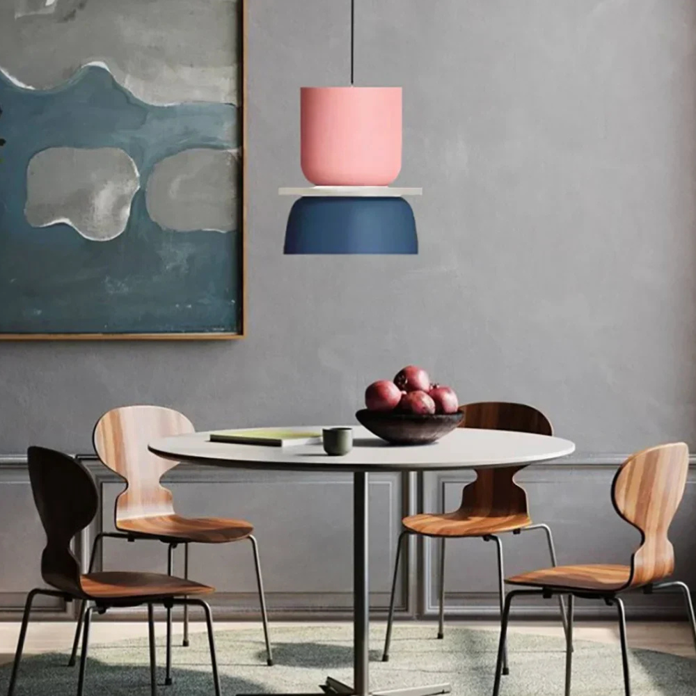 Verleihen Sie Ihrem Wohnraum eine verspielte, geometrische Energie, die von Mid-Century-Modern- und Memphis-Designbewegungen inspiriert ist. Diese mehrstufigen Pendelleuchten zeichnen sich durch eine kräftige Farbblock-Palette und eine gestapelte, skulpturale Form aus, die in jedem Raum einen fröhlichen Blickfang darstellt. Die lebendigen matten Oberflächen und klaren Linien verwandeln herkömmliche Deckenbeleuchtung in eine lebhafte Kunstinstallation, die sowohl die Stimmung als auch die Ästhetik eines zeitgenössischen Zuhauses aufhellt.