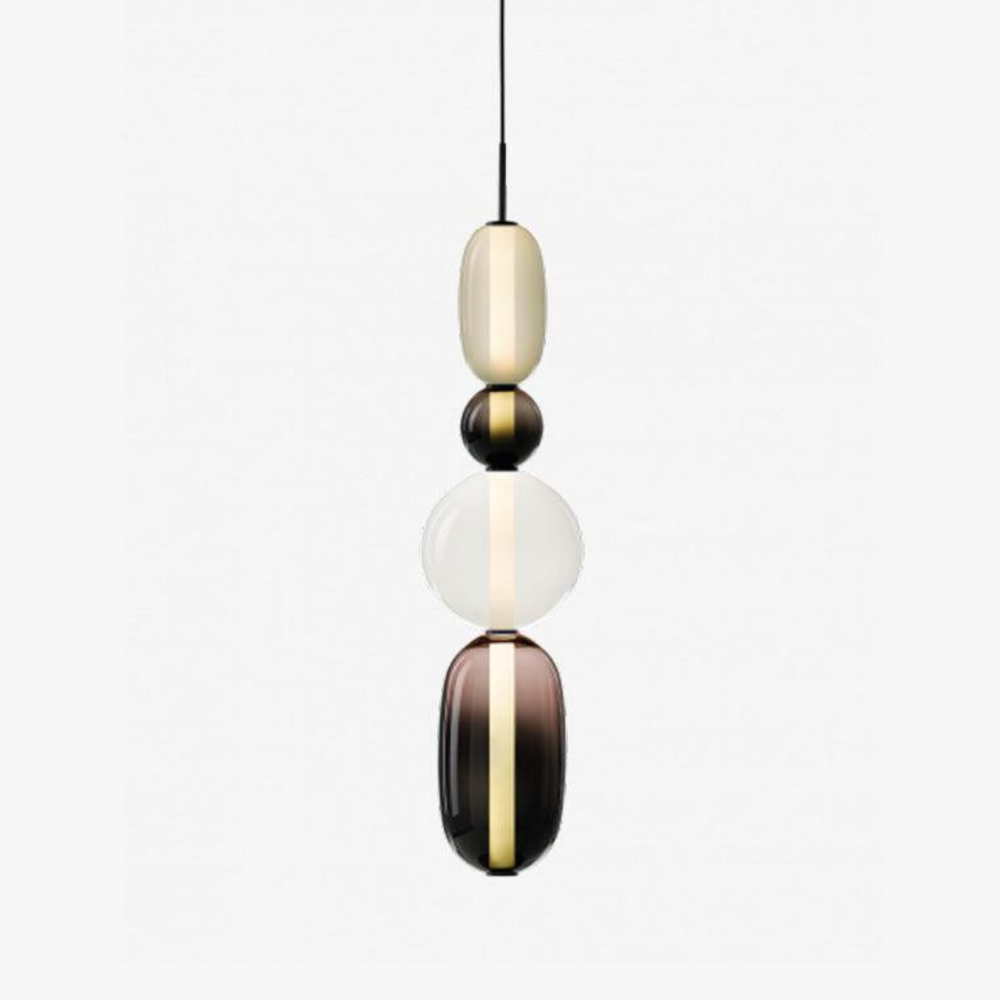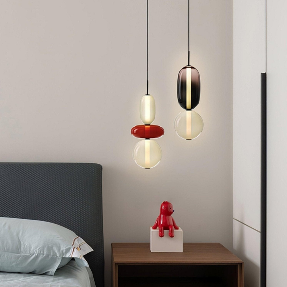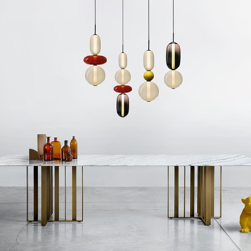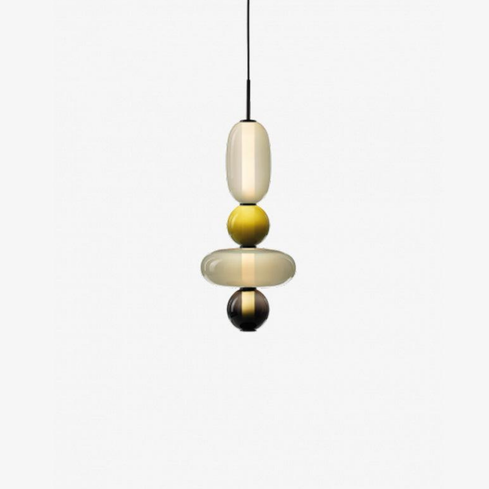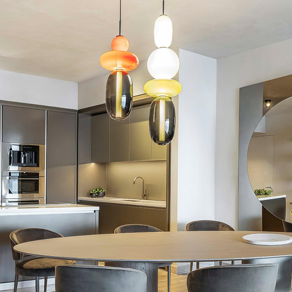 Bringen Sie einen Hauch von eleganter Art-déco-Energie in Ihr Zuhause mit diesen lebendigen, mehrstufigen Glastürmen, die als funktionaler Schmuck für Ihre Decke fungieren. Die gestapelten geometrischen Formen und verspielten Farbkombinationen schaffen eine markante vertikale Präsenz, die ein warmes und einladendes Licht ausstrahlt und jede gewöhnliche Ecke in ein sorgfältig gestaltetes Design-Statement verwandelt. Diese skulpturale Lichtlösung verbindet eine verspielte, moderne Ästhetik mit einem raffinierten Finish und ist damit die ideale Wahl für alle, die ihrem Interieur Persönlichkeit verleihen möchten.