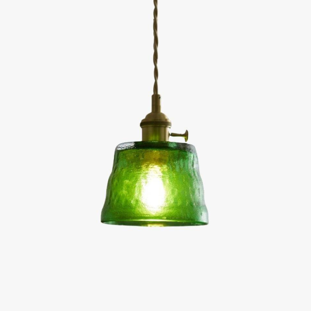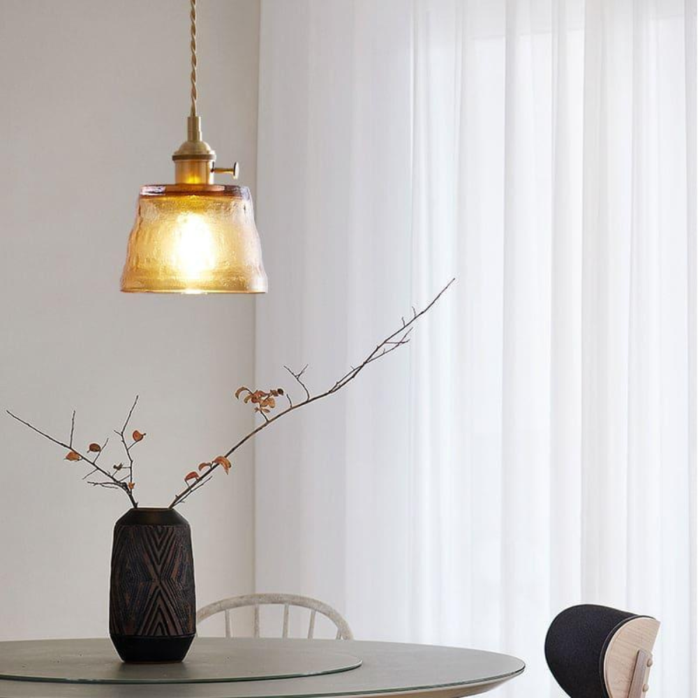 Hammered Glass Pendant Light with Brass Hardware - Nordic Modern Style