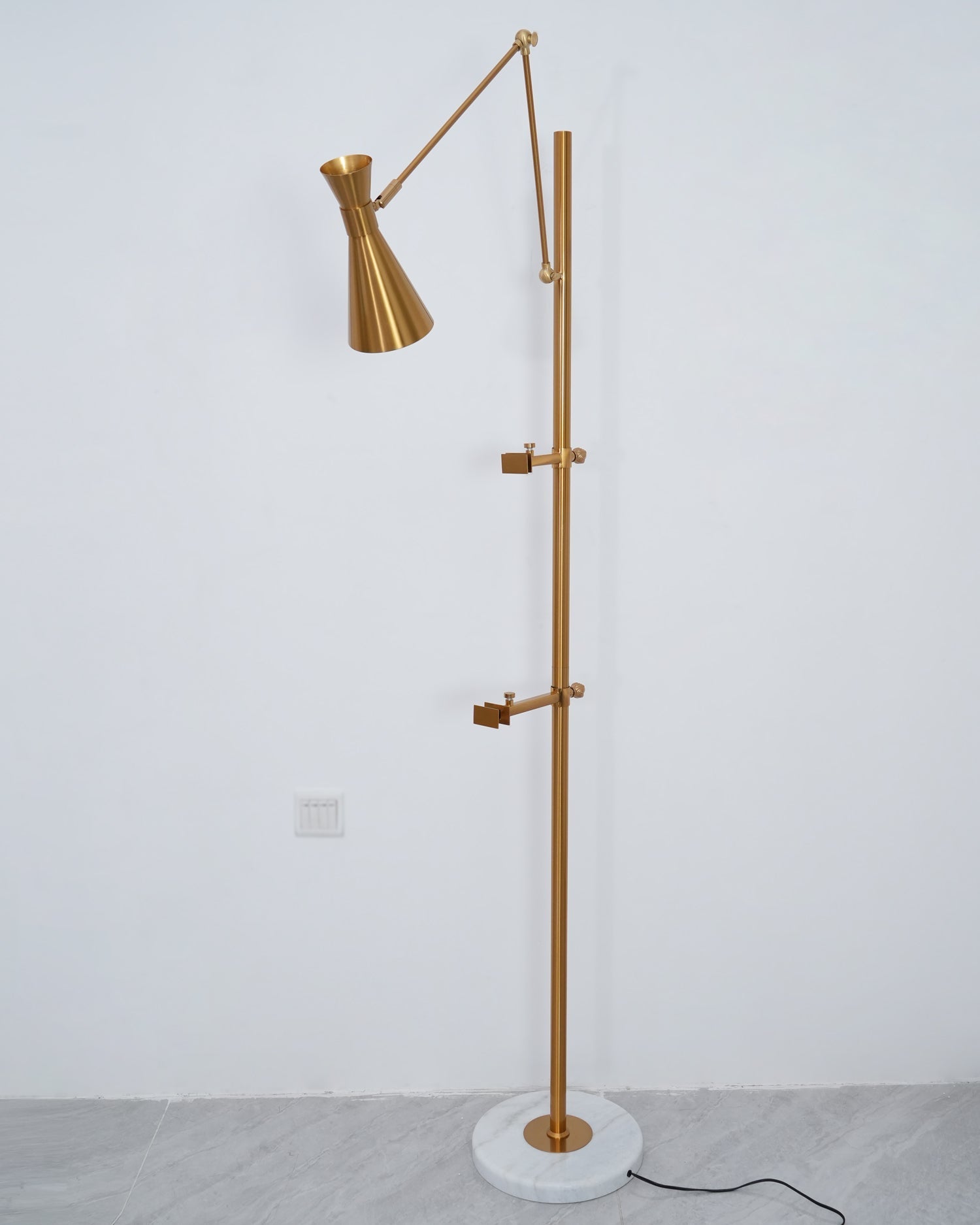 The Curator Floor Lamp turns any corner into a personal gallery, merging focused illumination with elegant art presentation. A slender, brass-finished frame ascends from a solid marble base, creating a sophisticated platform for both light and art. This unique floor lamp is designed not just to brighten a room, but to spotlight the pieces you love most.