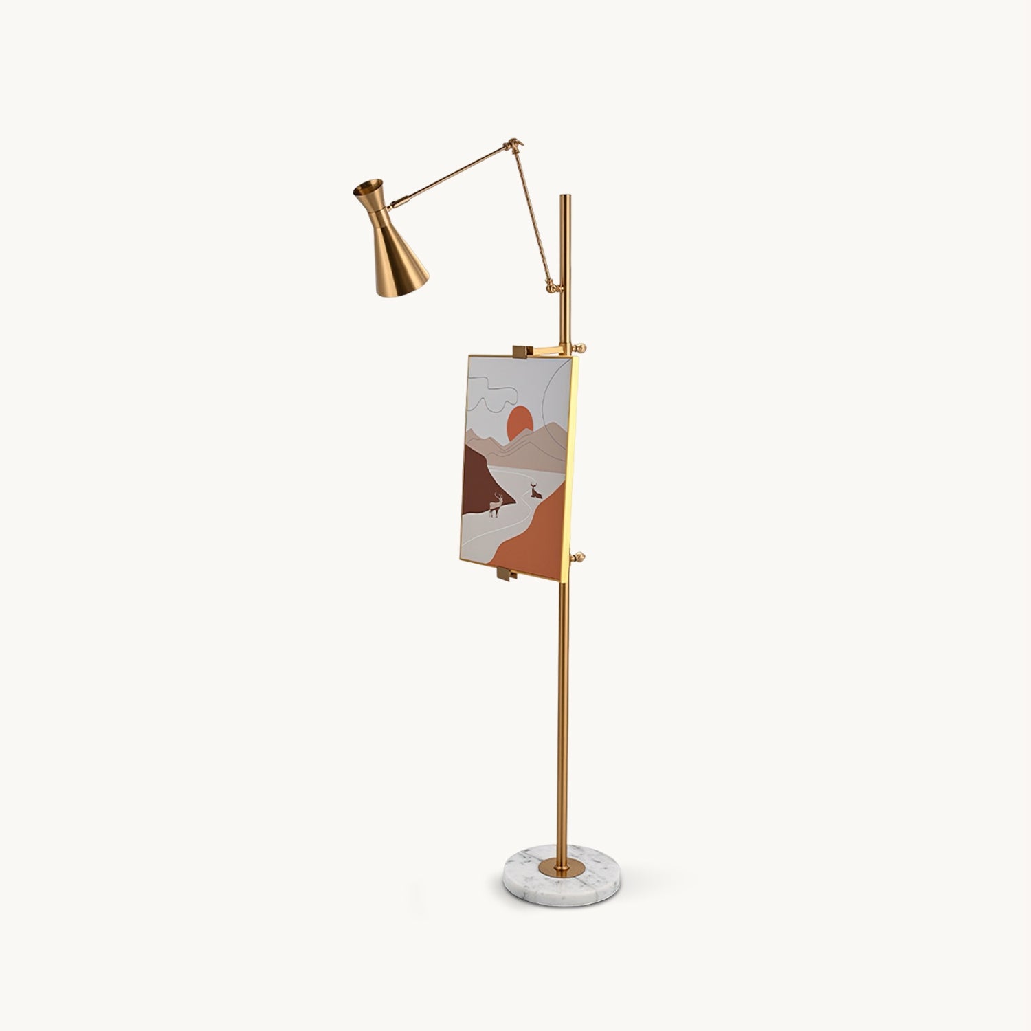 Dual-Purpose Design: A functional floor lamp and an integrated art easel in one seamless, space-saving form.