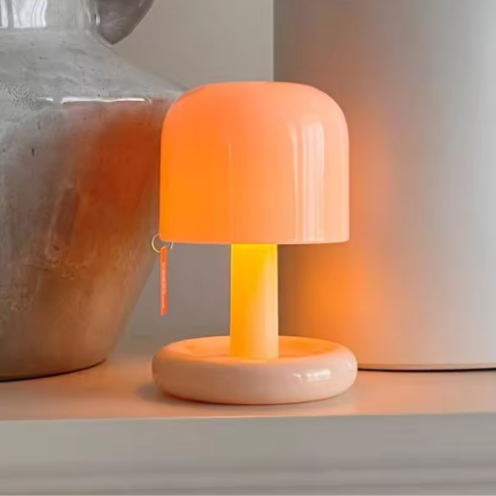Mushroom Table Lamp with Orange Dome Shade - Modern Mid Century
