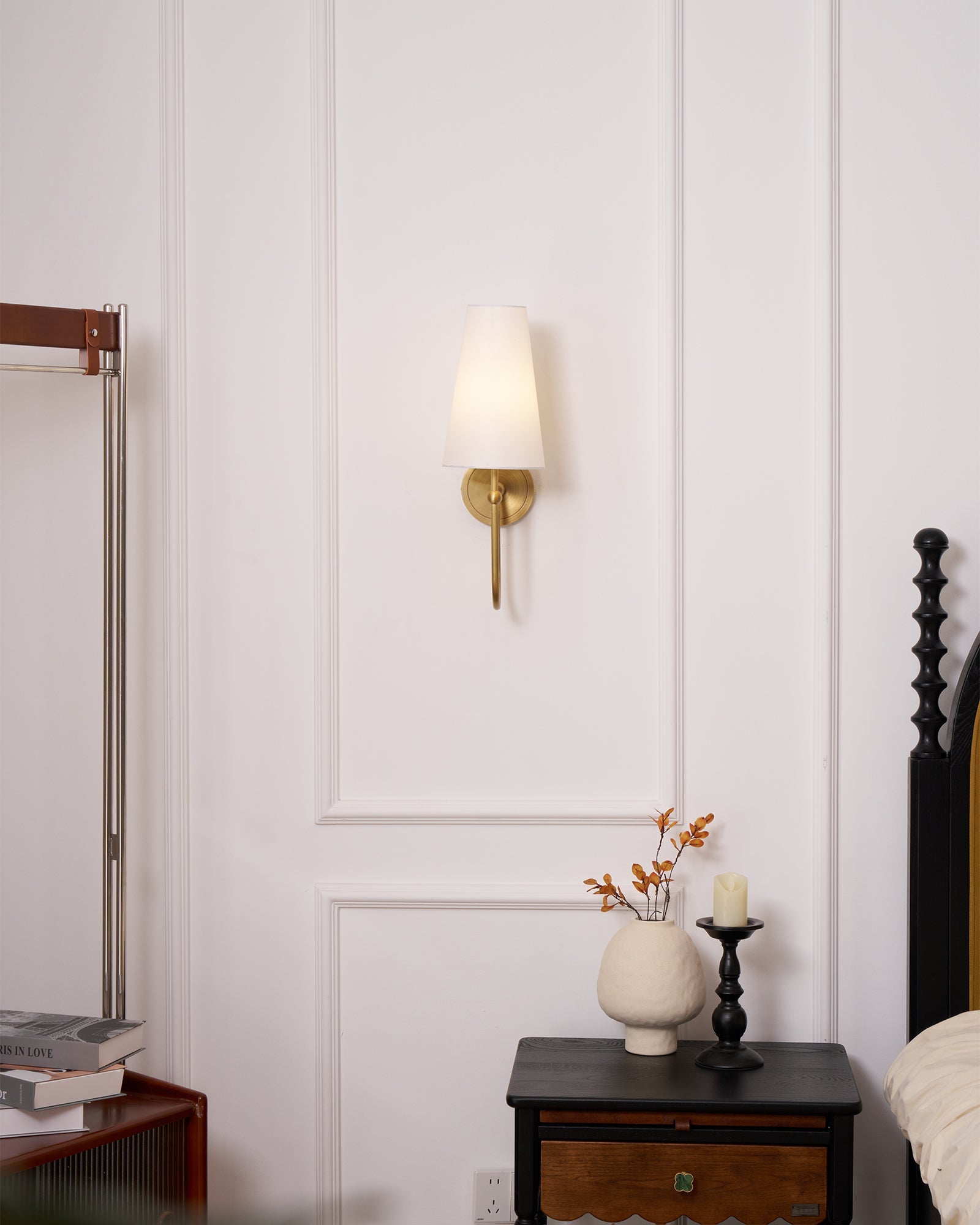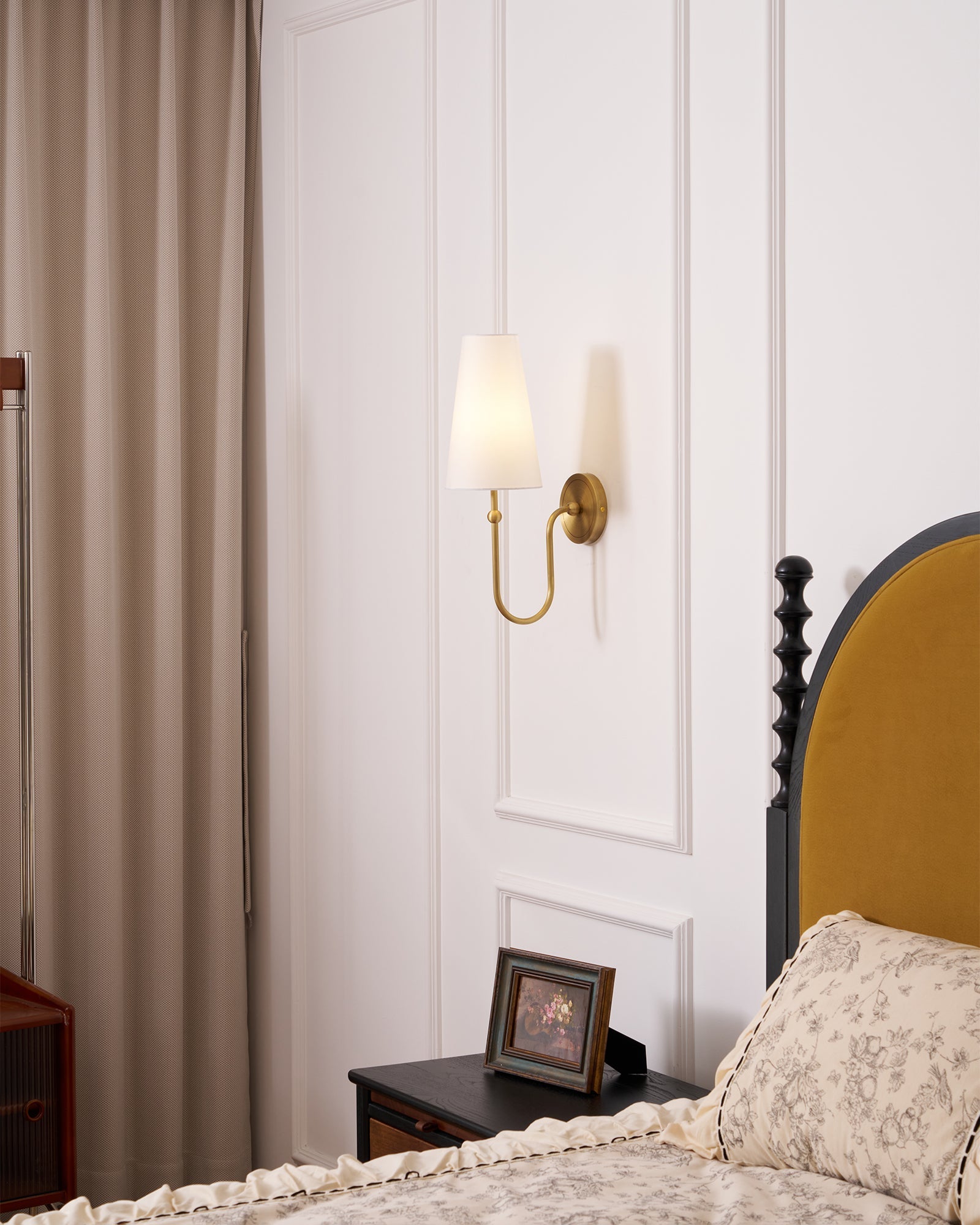 With a graceful form inspired by vintage European fixtures, The Stirrup Wall Sconce makes a refined, sculptural statement. Its design is defined by a sweeping U-shaped arm, rendered in a warm antique brass finish that feels both timeless and modern. Paired with a crisp, white fabric shade, this sconce provides a soft, upward glow, bringing a sense of balanced, transitional elegance to any wall.