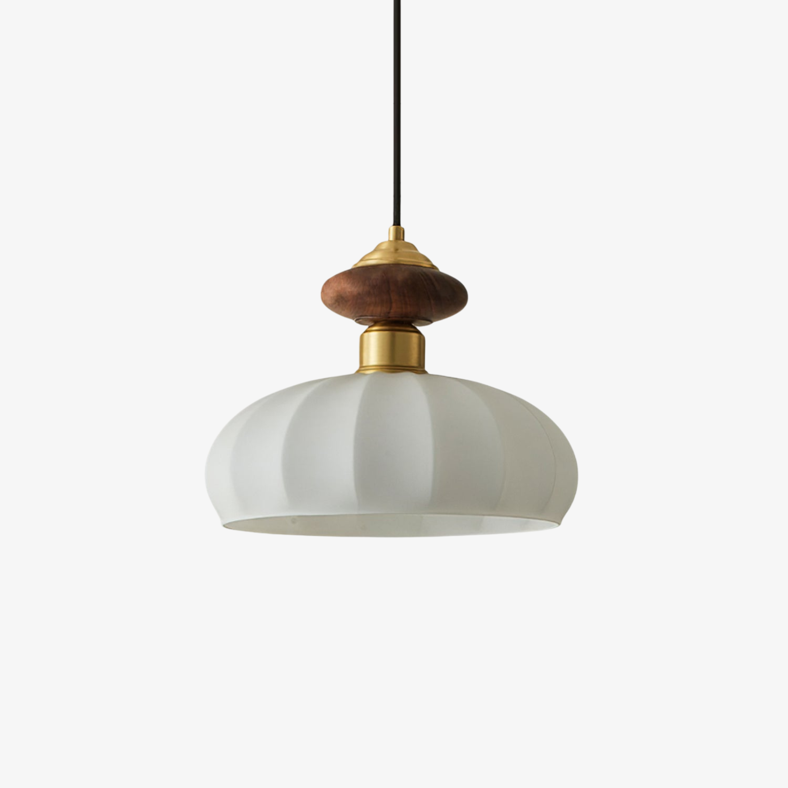 Inspiré par les formes douces et organiques d'un jardin de récolte, le pendentif Ceres célèbre la beauté naturelle et la forme raffinée. Son design présente un abat-jour en verre cannelé en forme de gourde, élégamment surmonté d'un accent en bois tourné à la main et de ferrures en laiton chaud. Ce pendentif apporte une touche d'élégance terreuse du milieu du siècle moderne, diffusant une lumière douce et accueillante.