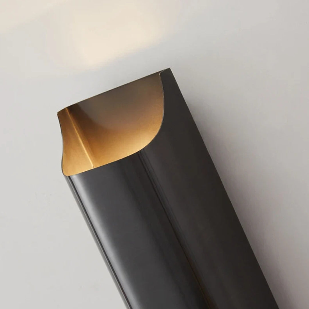 L'applique murale Channel est un exemple de pureté architecturale. Son corps est une colonne métallique unique et épurée, avec des ouvertures gracieusement courbées en haut et en bas. Ces ouvertures diffusent des cônes de lumière douce, baignant le mur au-dessus et en dessous d'une lueur chaude et ambiante.
