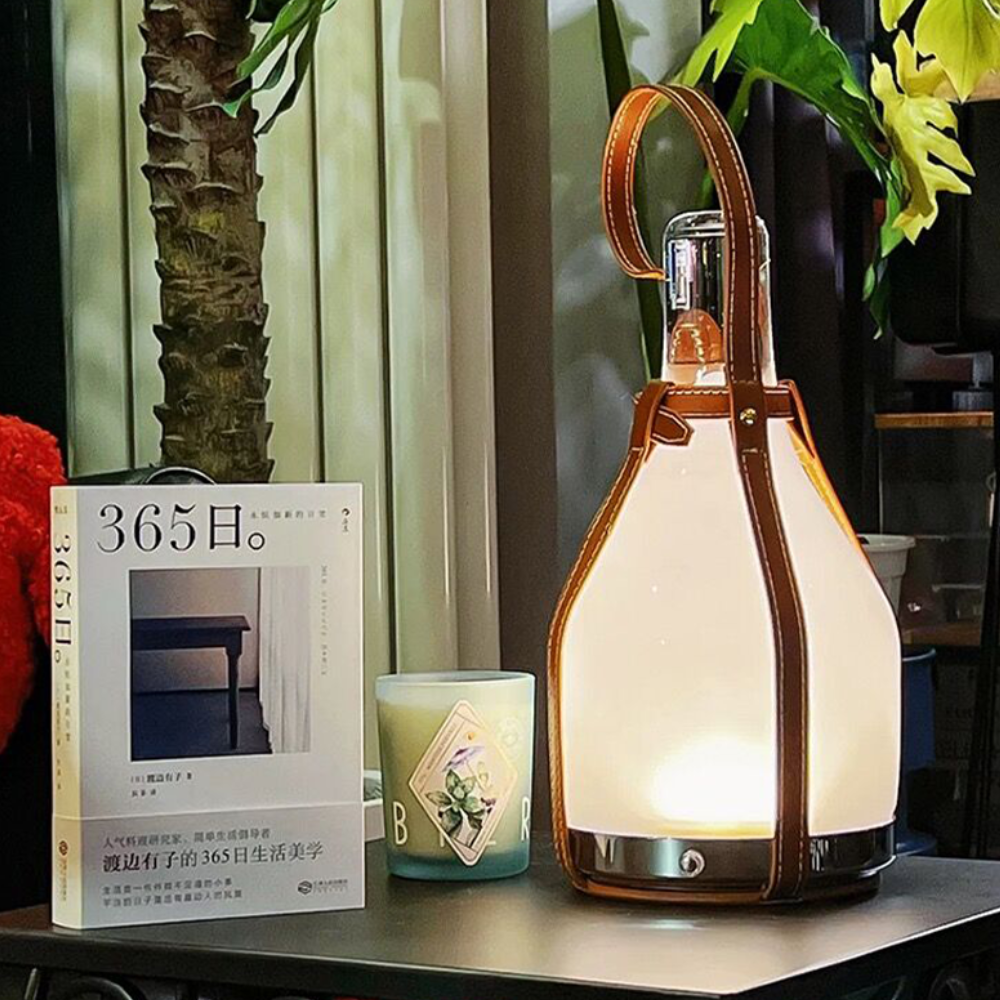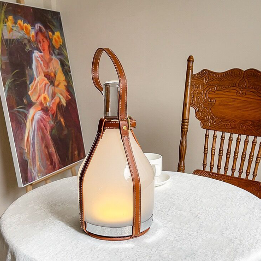 Lampe de table lanterne avec sangle en cuir - Moderne portable milieu du siècle