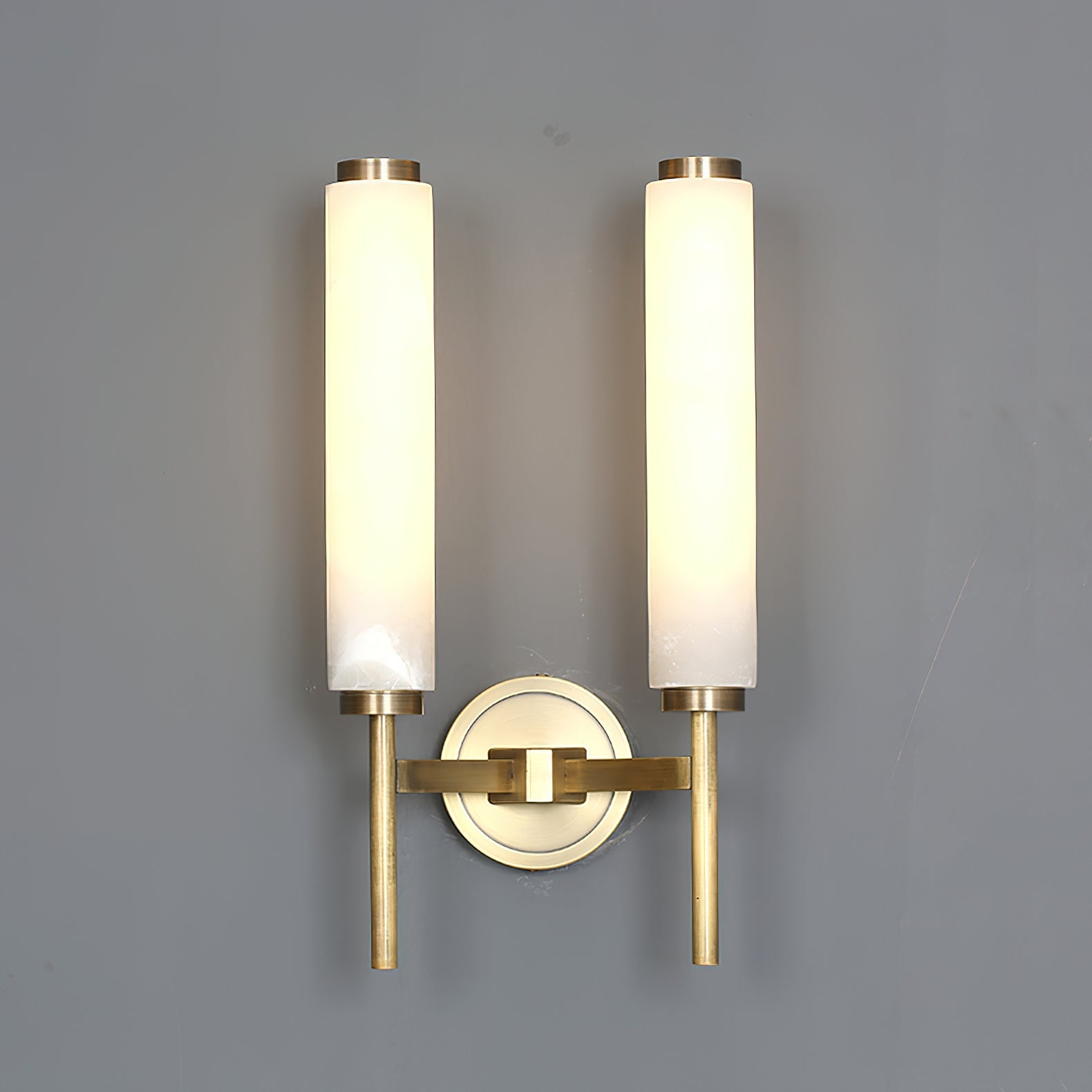 L'applique murale Lucent est une colonne de lumière, célébrant la fusion de la forme minimaliste et de l'opulence naturelle. Un cylindre en albâtre pur, semblable à une torche, est maintenu par une armature métallique aux lignes épurées, créant un luminaire à la fois moderne et monumental. Disponible en pilier unique ou en paire équilibrée, la pierre s'anime lorsqu'elle est éclairée, révélant ses veines uniques et diffusant une lueur chaleureuse et atmosphérique.