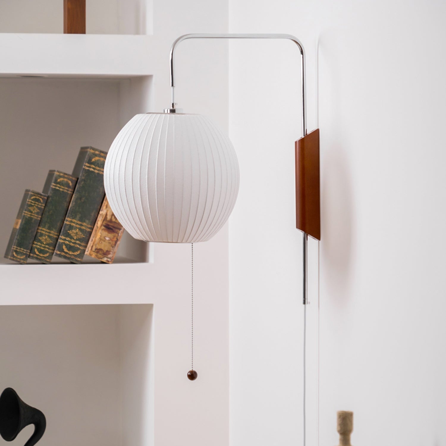 Matériaux : Abat-jour en polymère, bras en acier, plaque murale en noyer