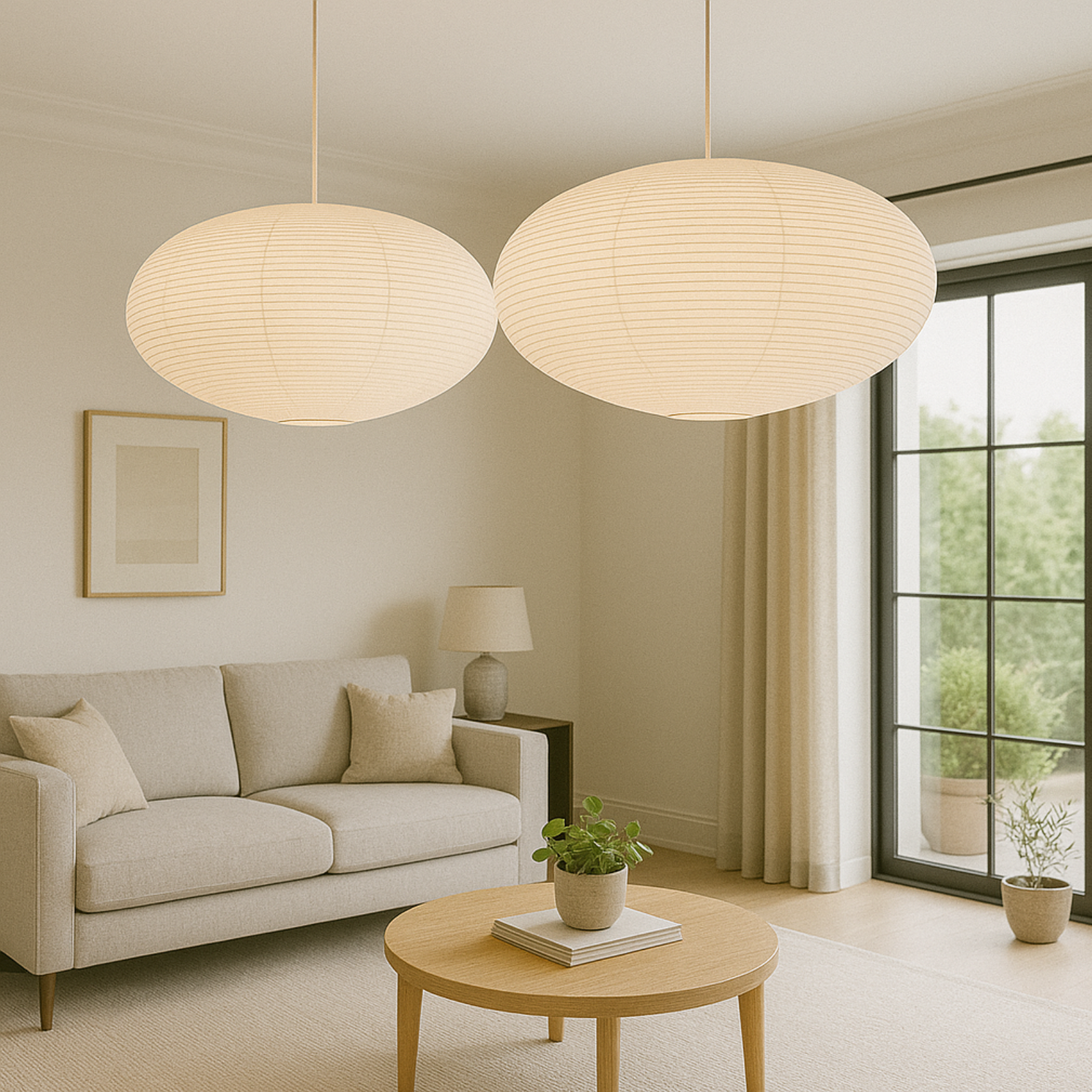 Lanterne suspendue en cocon de soie et papier de riz japonais moderne - Style Noguchi