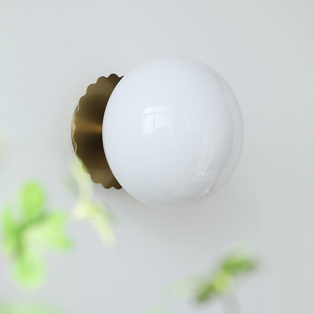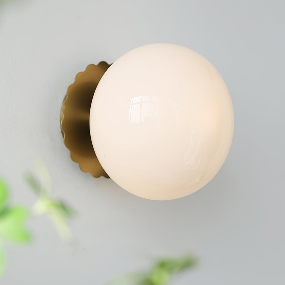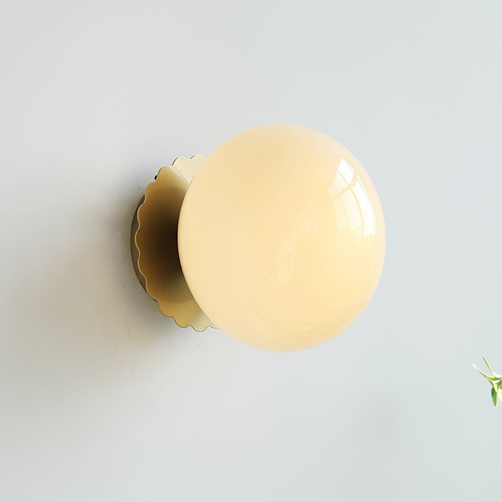 Bring a touch of modern, art-deco-inspired charm to your home with this sculptural wall fixture that feels like a curated piece of functional art. Its design is defined by a soft, glowing glass orb that sits elegantly against a scalloped backplate, creating a rhythmic silhouette on your walls. Rooted in a refined, contemporary aesthetic, this light provides a warm and inviting radiance, making it a thoughtful choice for adding a finishing touch of sophisticated character to your living space.