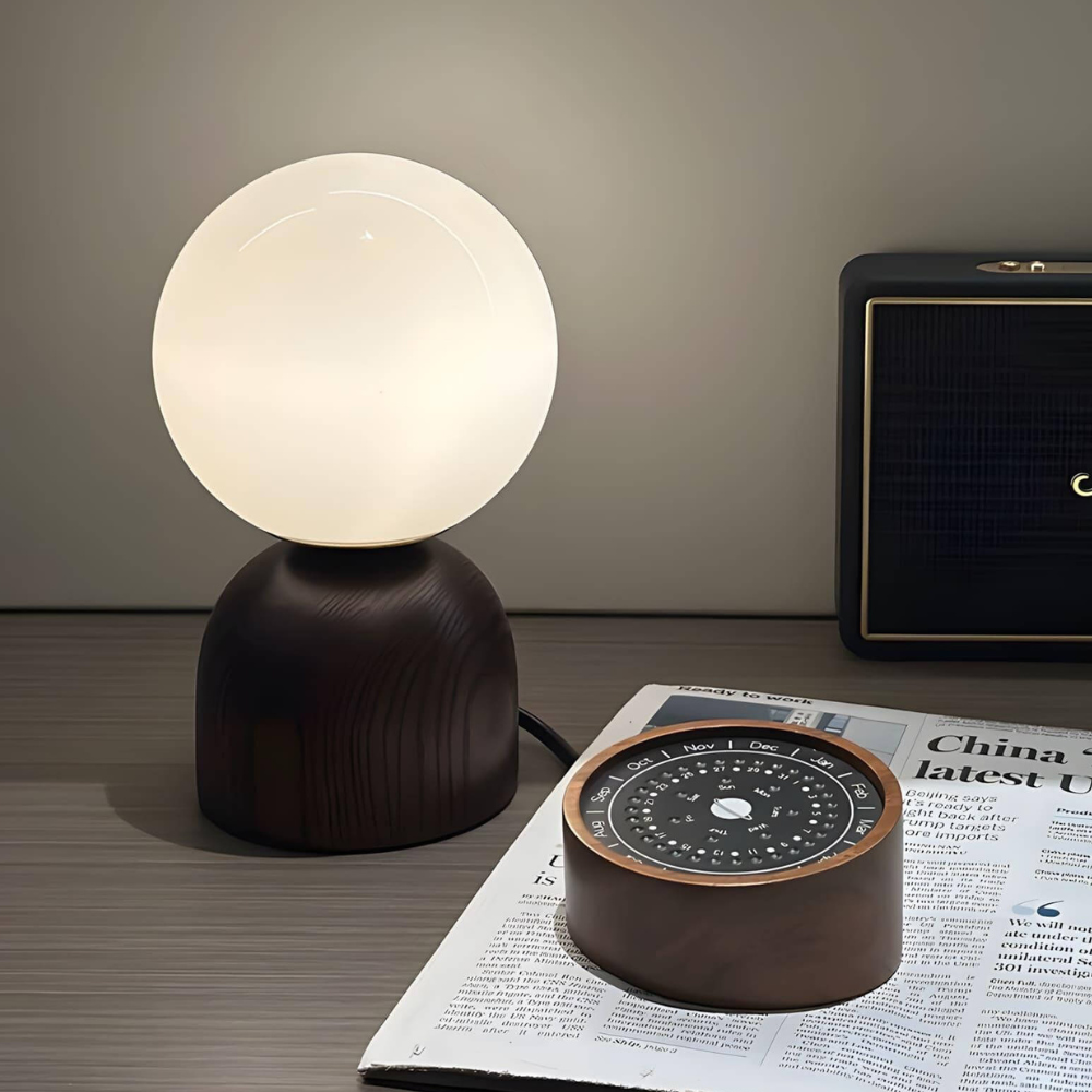 Bring a sense of natural warmth to your living room or bedside with a design that blends contemporary forms and traditional materials. This piece features a solid wood base topped with a frosted white glass sphere, creating a balanced silhouette that casts a calming, diffused glow. Rooted in a mid-century modern and art deco aesthetic, it transforms your tabletop into a source of quiet style and atmospheric light.
