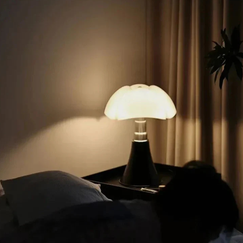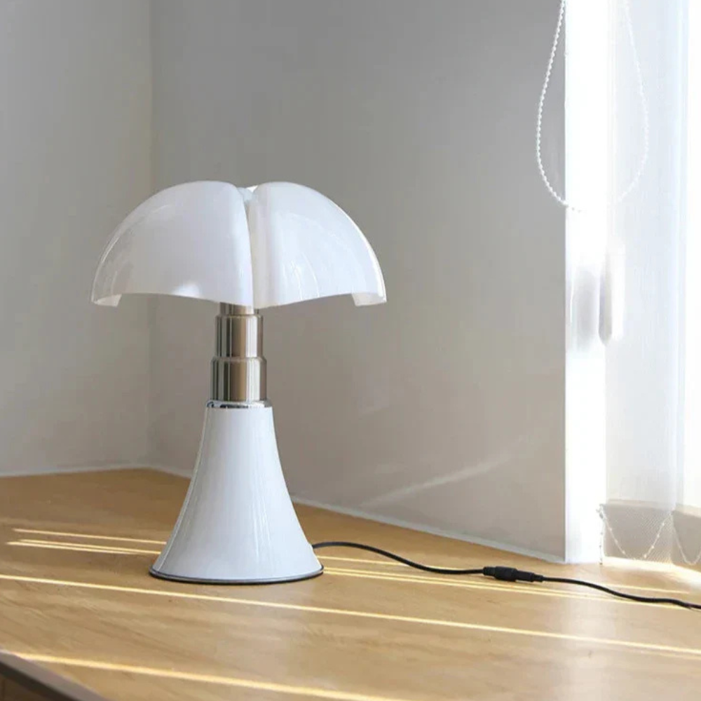 Bring a nostalgic yet polished aesthetic to your desk or side table with this mid-century modern statement piece. Its iconic four-lobed shade mimics the soft curves of a blooming flower, casting a wide, even glow that is ideal for both focused tasks and evening relaxation. This sculptural lamp bridges the gap between retro Italian design and contemporary minimalism, offering a bold silhouette that anchors your room with a sense of playful sophistication.