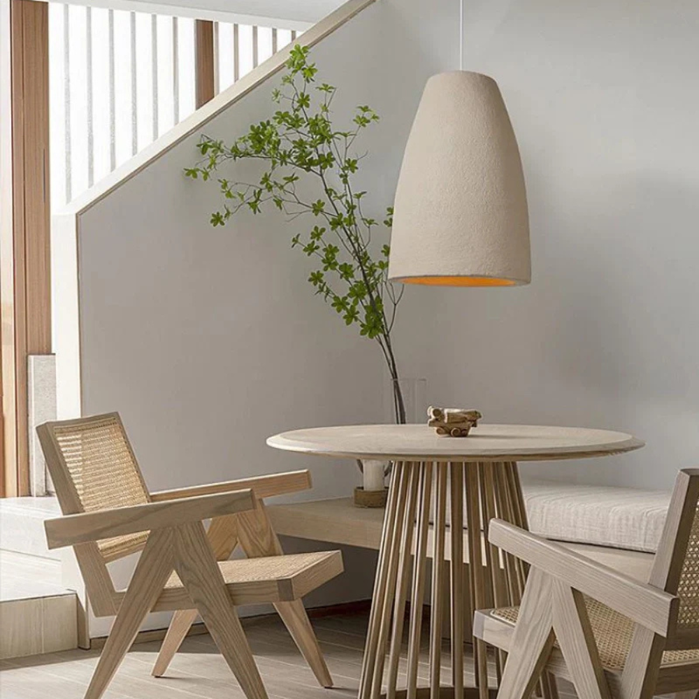 Pendant Light Fixture with Textured Stone Finish - Wabi Sabi Japandi