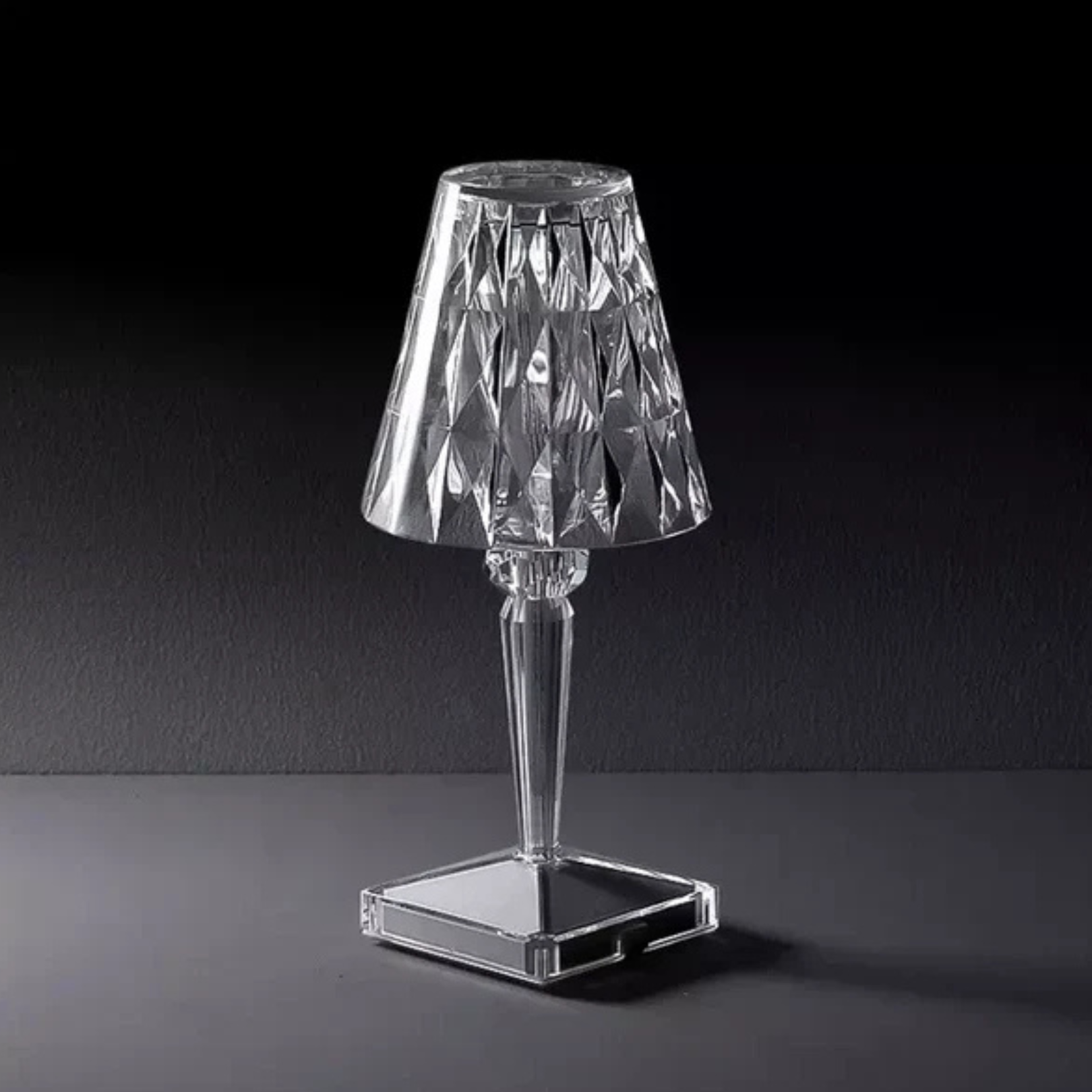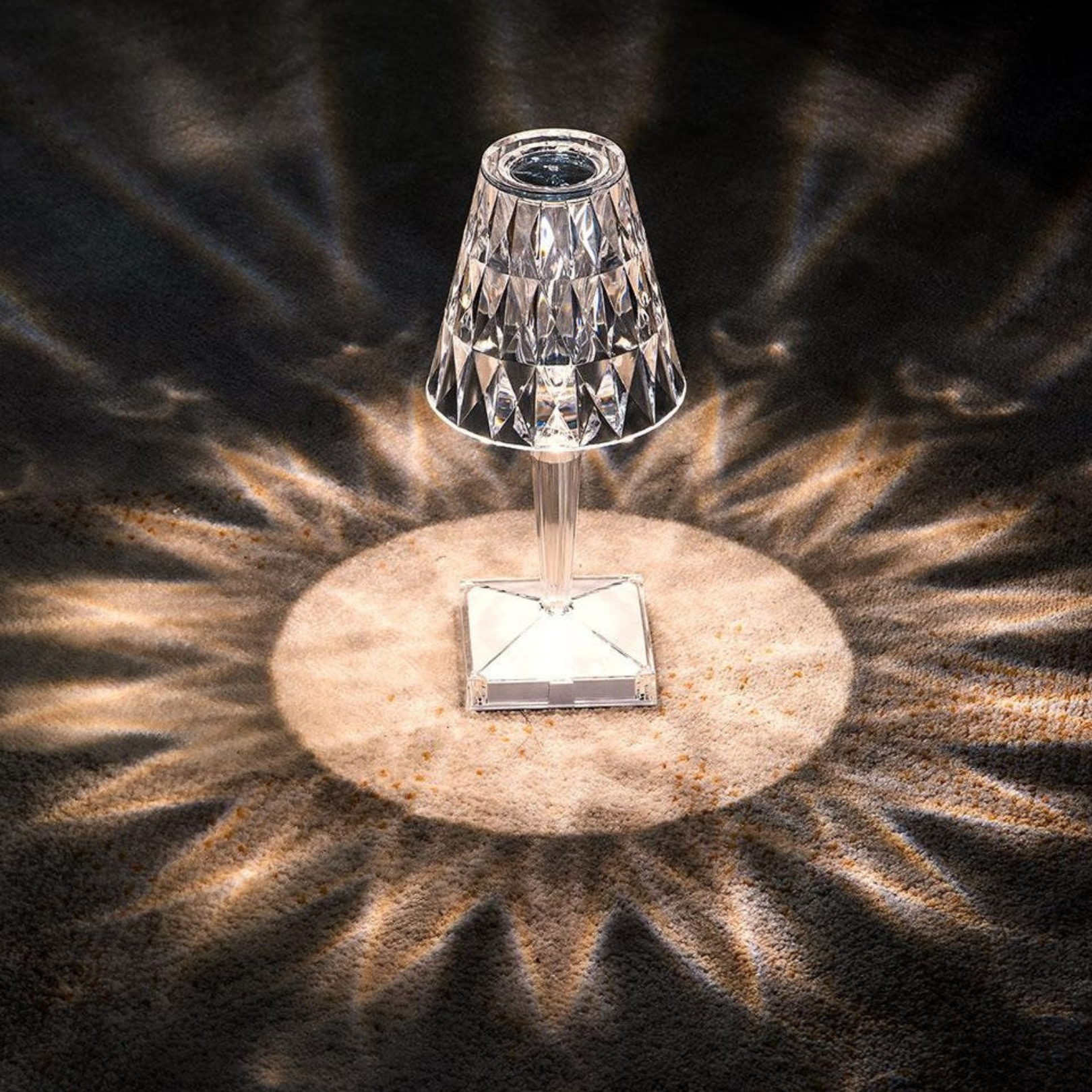 Infuse your surroundings with a touch of radiant allure through this versatile table lamp. Its multifaceted acrylic surface catches and refracts light, casting stunning, dynamic patterns that elevate the ambiance of any room. With the added freedom of a rechargeable design, this captivating piece offers both dazzling visual appeal and adaptable illumination to suit any moment.
