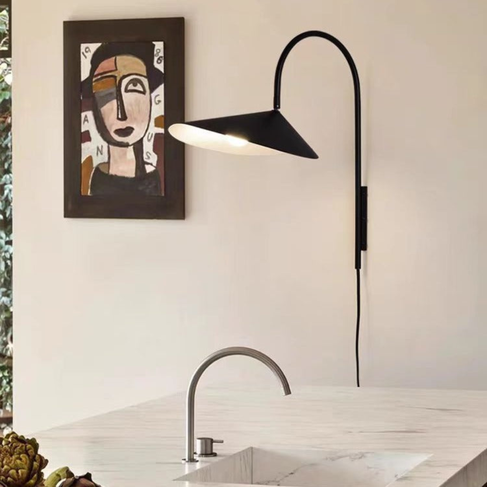 Bring a sense of sculptural movement and modern poise to your walls with a design that balances delicate curves with striking industrial lines. This adjustable fixture features a petal-shaped metal shade suspended from a slender, arching neck, creating a silhouette that feels both organic and intentional. It provides a directed, glare-free glow that can be effortlessly positioned to highlight a favorite nook or illuminate a workspace, transforming a simple wall light into a functional piece of art.