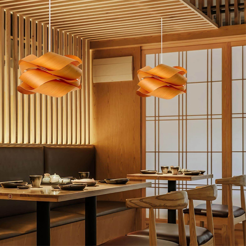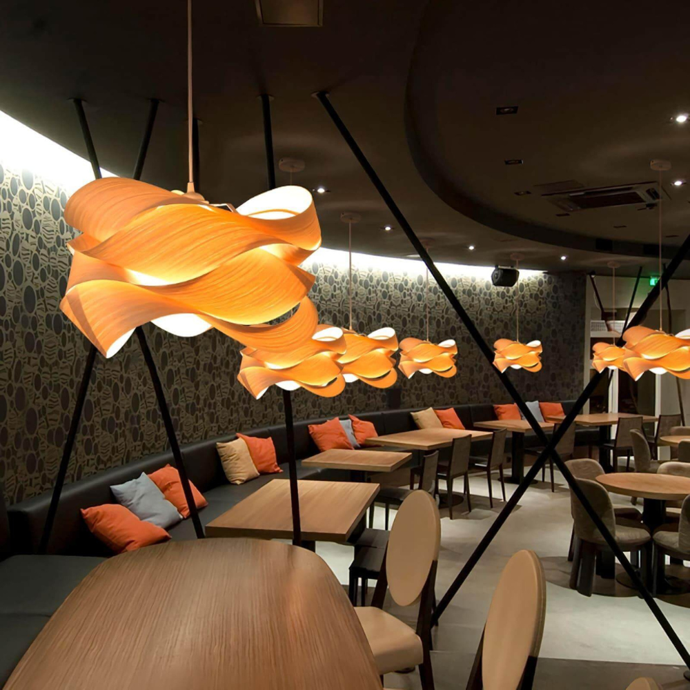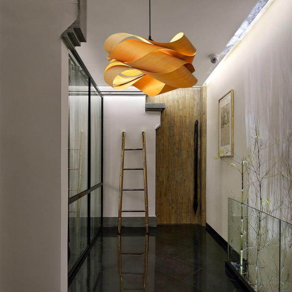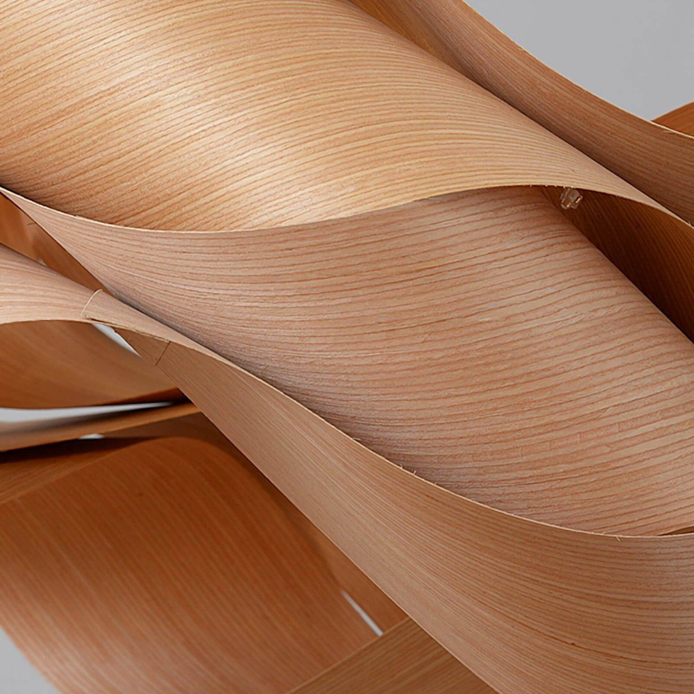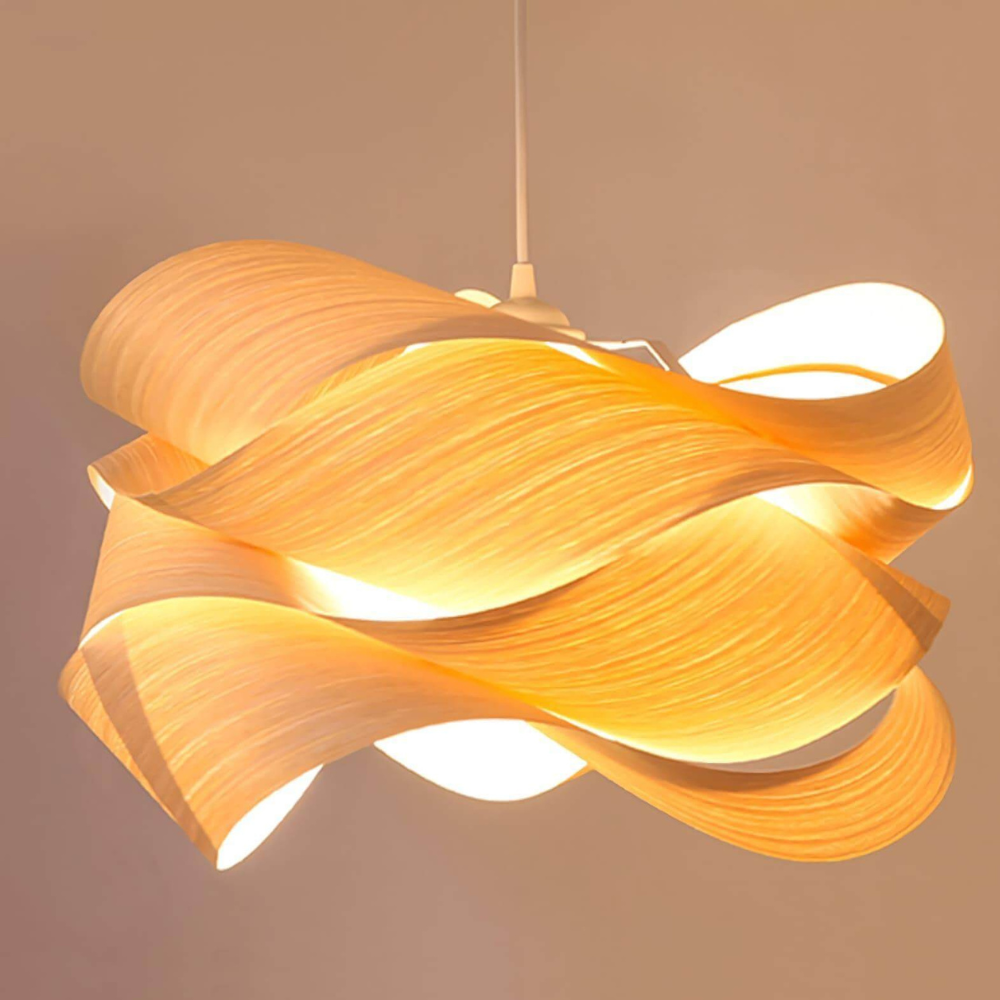 Bring a sense of warmth and movement to your living space with a design that features a natural wood grain shade. This eye-catching piece radiates beauty and a soft, crisp light, grounding your room in a mid-century modern or boho aesthetic. By blending natural materials with a flowing, ribbon-like form, it transforms your ceiling into a source of timeless style.