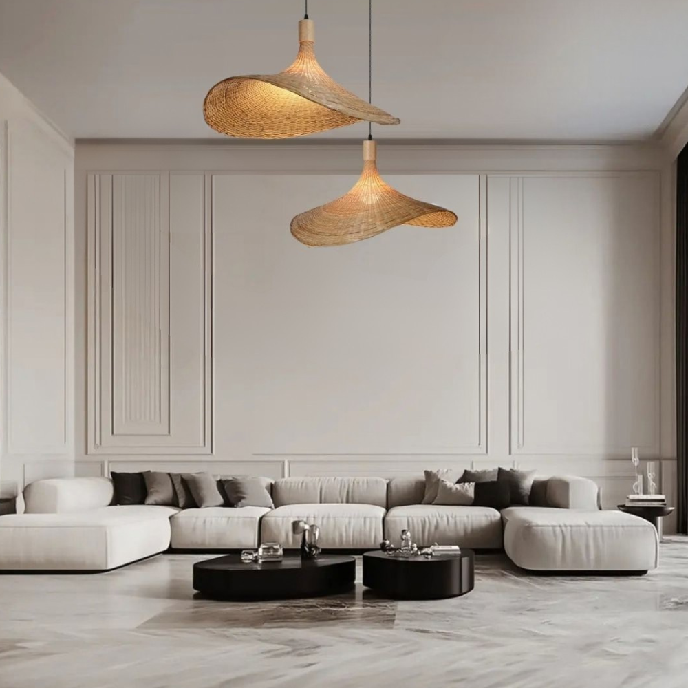 Bring a touch of nature-inspired warmth to your home with a design that captures the graceful, undulating curves of a sun hat. This pendant is defined by its wide, woven silhouette that filters light through its intricate patterns, casting a soft, dappled radiance across your surfaces. Rooted in a relaxed boho and coastal aesthetic, this airy fixture provides a welcoming glow, making it a thoughtful choice for adding a finishing touch of earthy character to your living space.