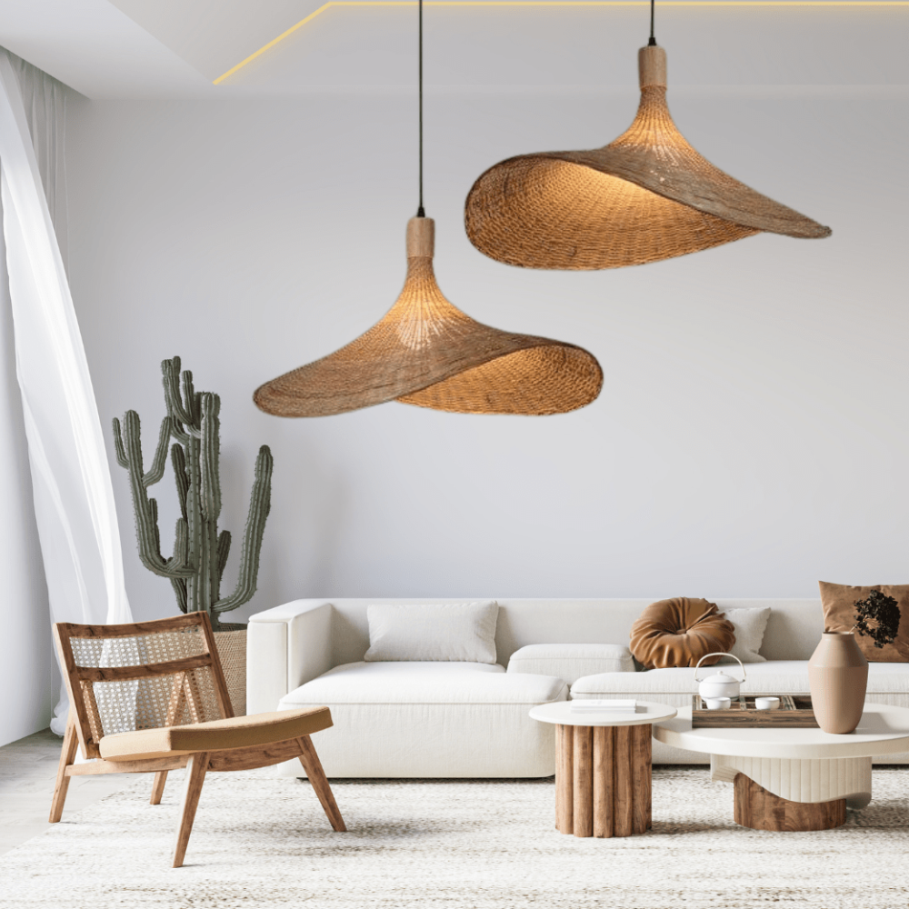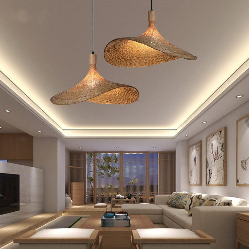 Woven Bamboo Sun Hat Pendant Light - Coastal Boho Decor